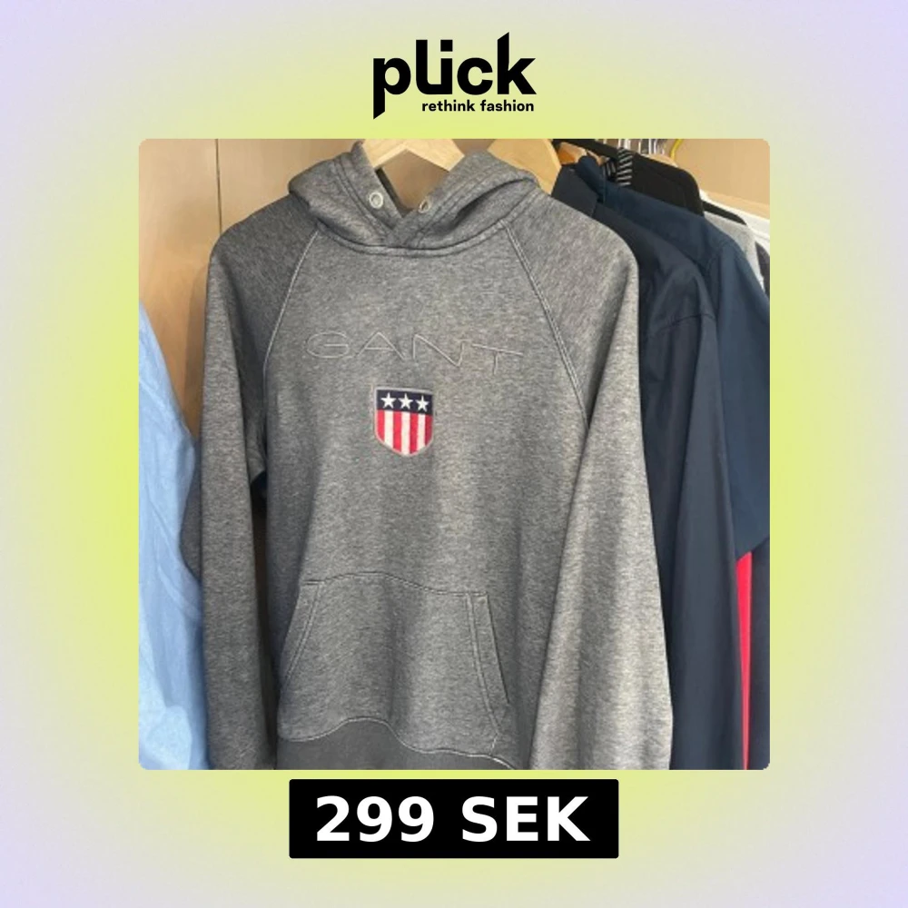Säljer en grå hoodie från GANT med broderad logga. Tröjan har huva och en stor magficka framtill. Perfekt för en avslappnad stil.