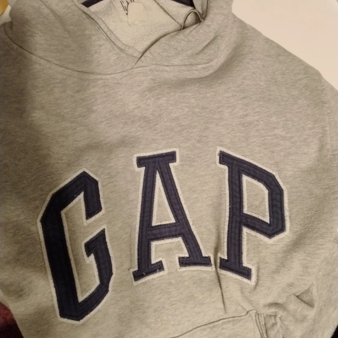 Säljer en grå hoodie från GAP Kids med stor logga på . Tröjan har en klassisk känguruficka och långa ärmar. Perfekt för en avslappnad stil. Pris kan diskuteras.
