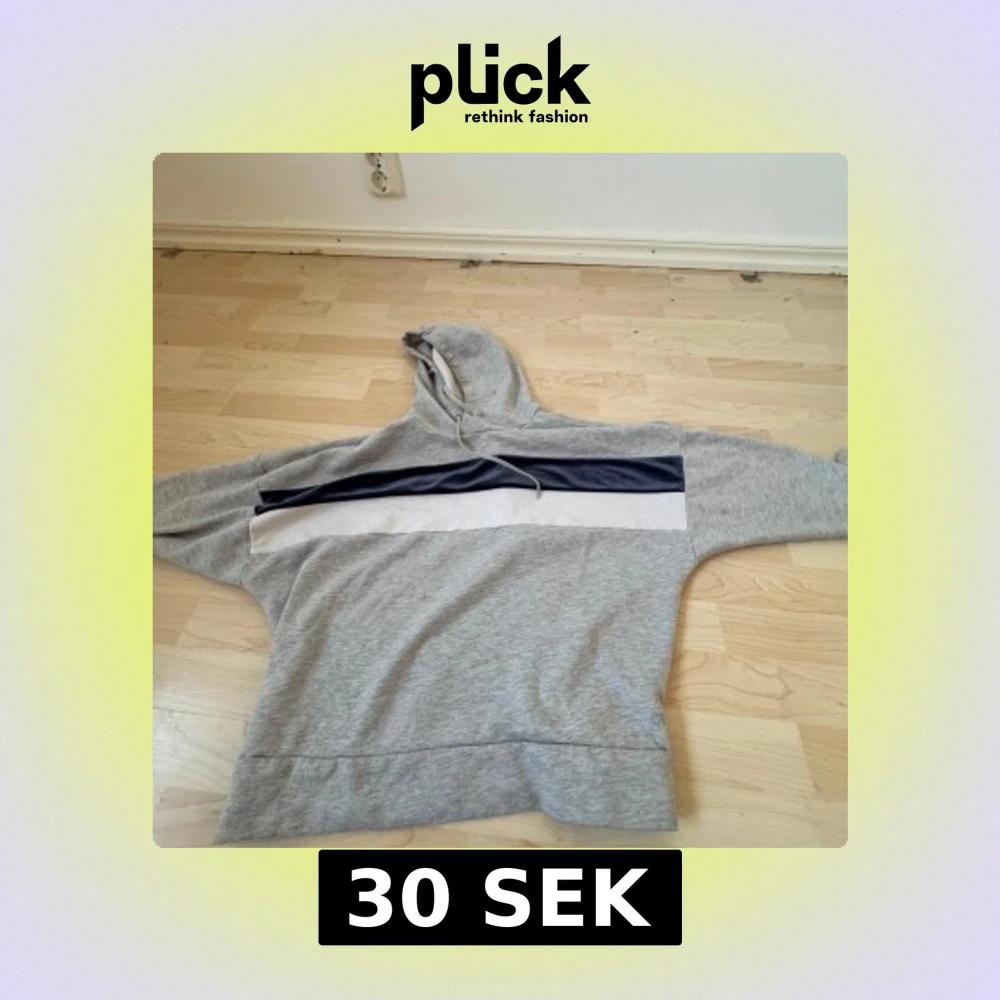 Säljer en bekväm grå hoodie från GapFit med en stilren design. Tröjan har en mörkblå och vit rand över bröstet och en praktisk huva. Perfekt för en avslappnad stil.