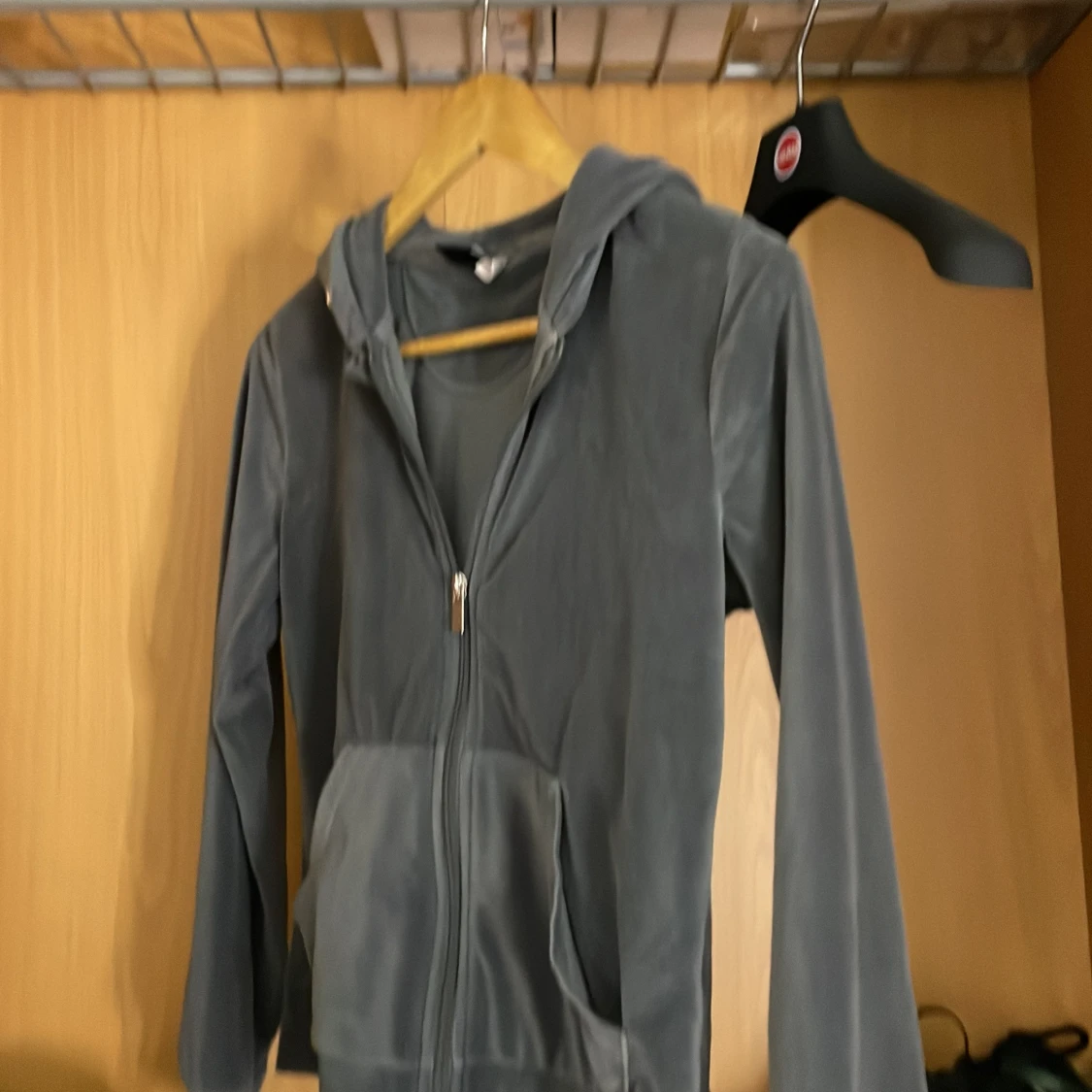 Säljer en stilren grå hoodie från Gina Tricot i storlek XS. Den har en dragkedja framtill och en praktisk huva. Perfekt för en avslappnad look.