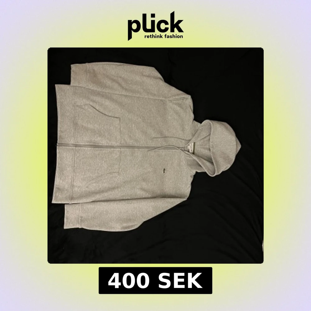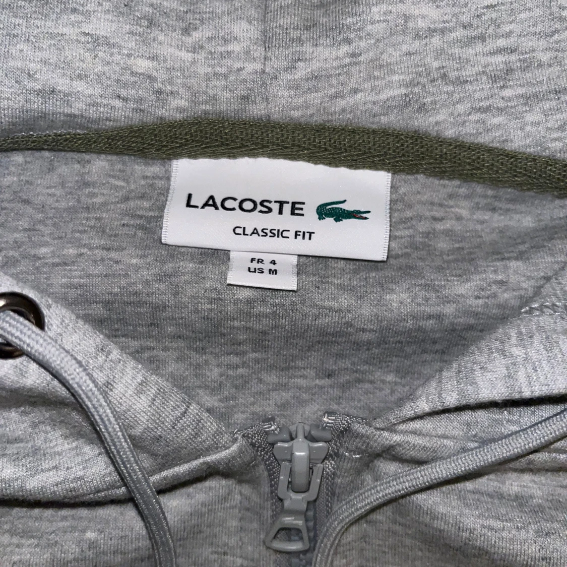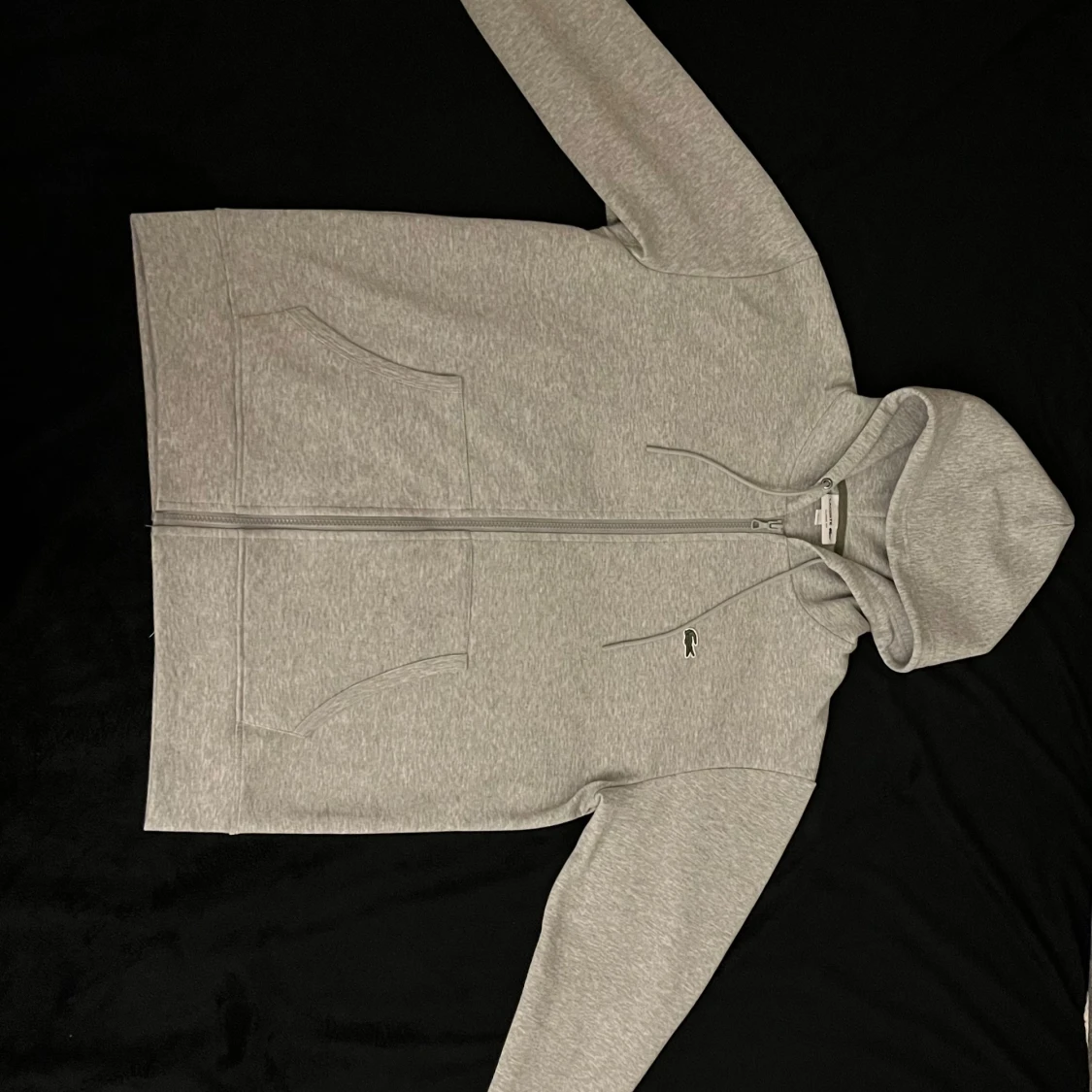 Grå zip hoodie från Lacoste. Har använts i ungefär 1 år och tyckte det var dags att sälja den pågrund av att det inte är min stil längre. Det enda som inte finns är skötseletikett. Jag är 177 och tycker att den passar bra !OBS pris går att diskuteras!