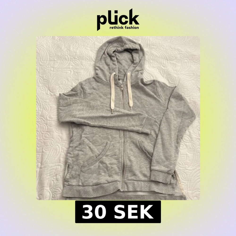 Säljer en grå hoodie från Lindex i storlek M. Den har en dragkedja framtill och justerbara snören i huvan samt små slits på varsin sida. Tillverkad i mjuk bomullsmix för extra komfort.