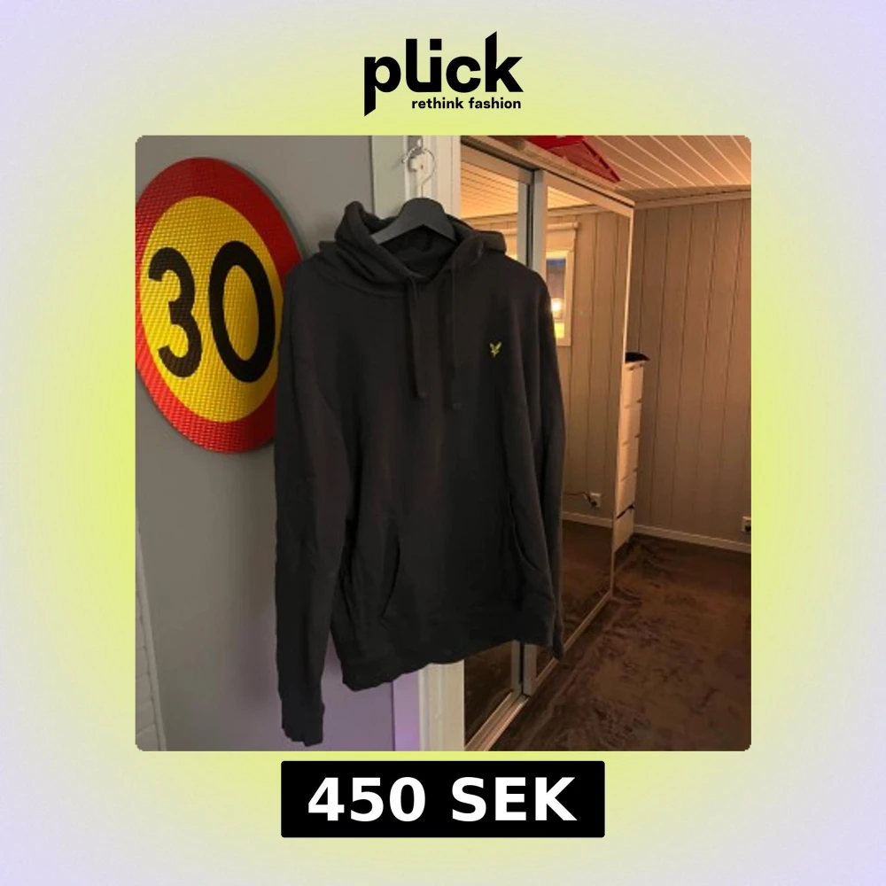 Grå hoodie från Lyle & Scott med klassisk gul logga på bröstet. Tröjan har huva med snörning och en stor magficka framtill. Mjuk bomullskänsla och långärmad modell, perfekt för chill dagar. Snygg och enkel design som funkar till det mesta. Det är en XL men känns som en L.