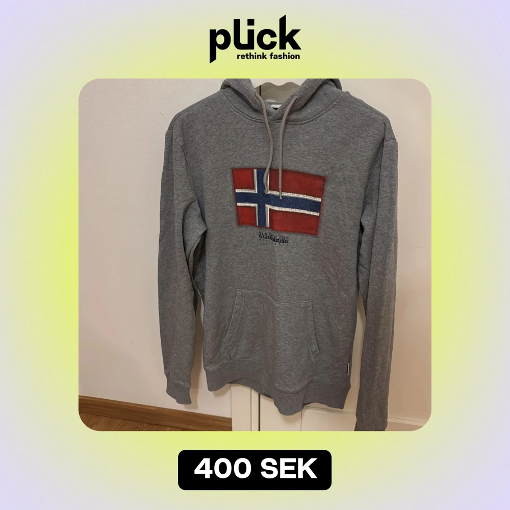 Säljer en snygg grå hoodie från Napapijri med norsk flagga på bröstet som är i mycket fint skick. Perfekt för kyliga dagar med sin mjuka och bekväma passform. Hör av er om minsta lilla!
