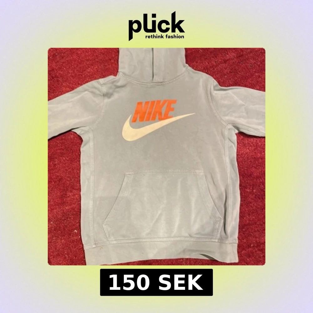 Säljer en ljusblå hoodie från Nike med en stor orange logga på framsidan. Tröjan har en klassisk känguruficka och en bekväm huva. Perfekt för en avslappnad stil.