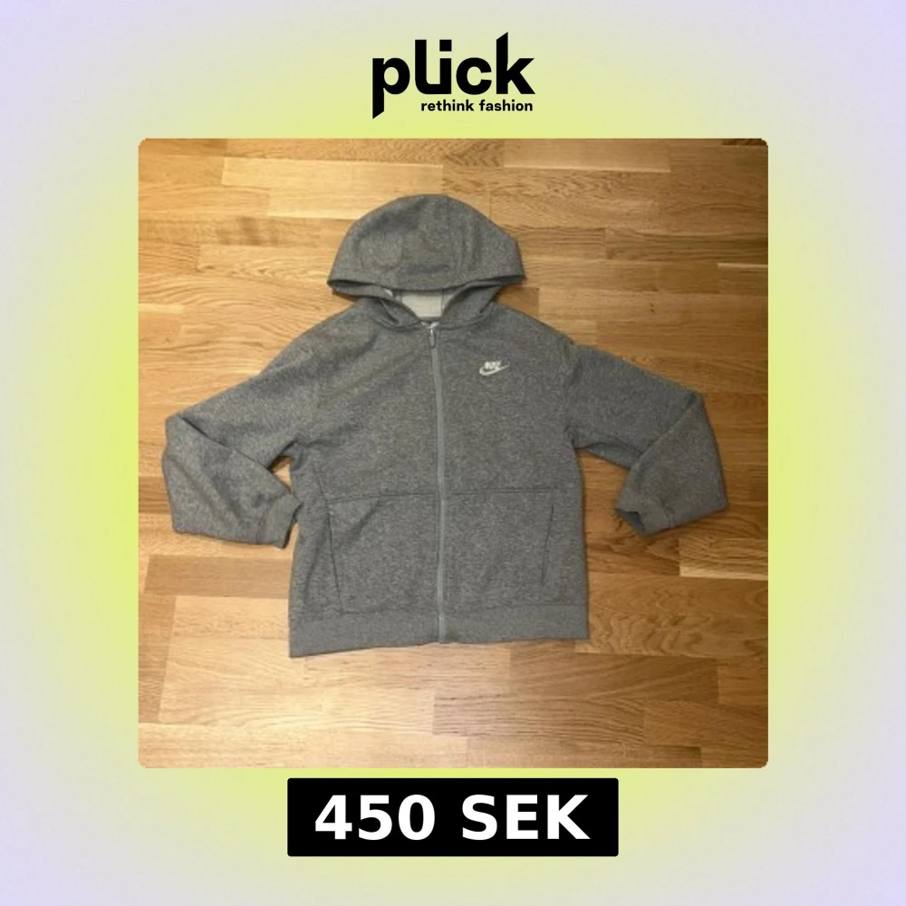 Säljer en grå hoodie från Nike med dragkedja och huva. Den har en klassisk design med Nike-logga på bröstet och är tillverkad i mjukt material för extra komfort. Perfekt för en avslappnad stil.