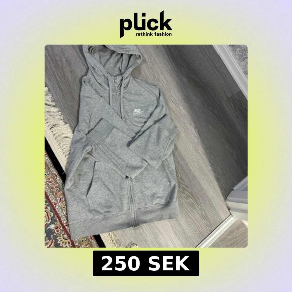 Snygg grå hoodie från Nike med huva och hel dragkedja framtill. Tröjan har två stora fickor och klassisk Nike-logga på bröstet. Perfekt för chill dagar eller när du vill ha en sportig look.