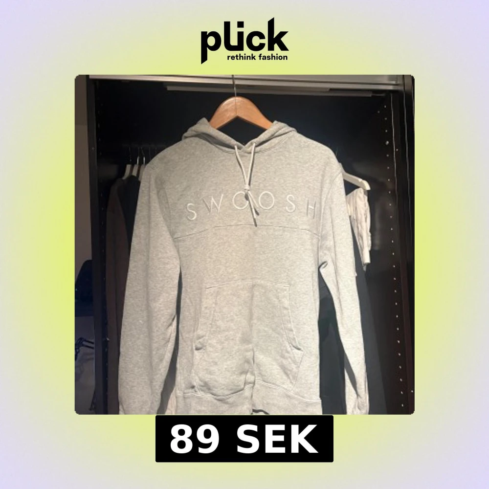 Grå hoodie från Nike med broderad SWOOSH-text framtill och diskret logga bak. Tröjan har huva med snörning, stor magficka och långa ärmar. Perfekt för chill eller streetwear. Mjuk bomullsmix som känns skön mot huden.