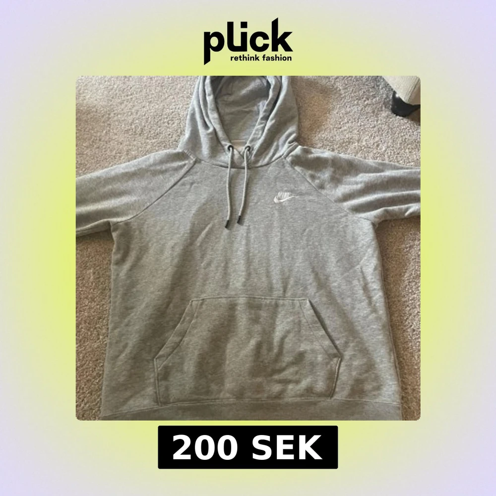 Säljer en klassisk grå hoodie från Nike med vit logga på bröstet. Tröjan har huva med dragsko och en stor magficka framtill. Perfekt för en avslappnad stil och enkel att matcha med det mesta.