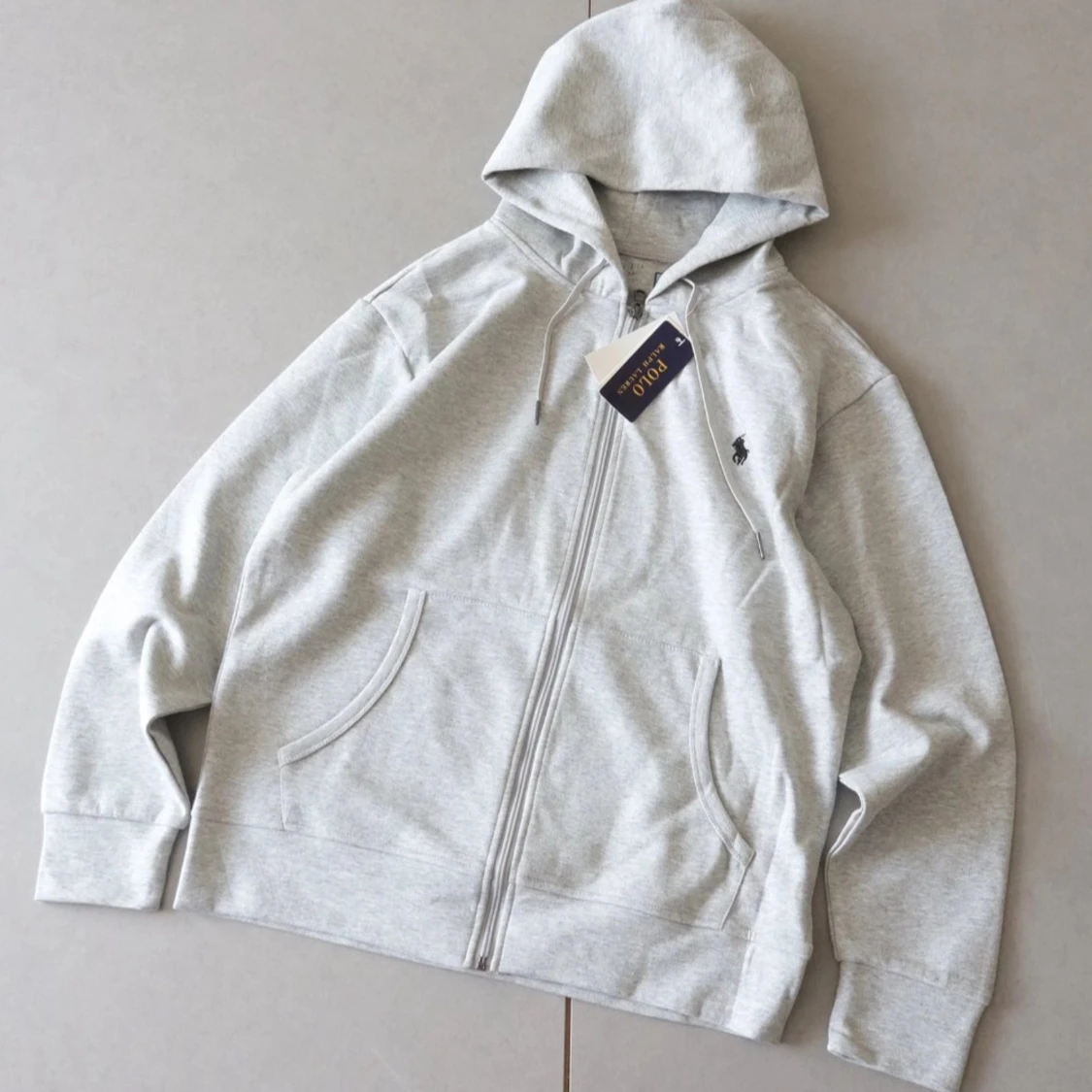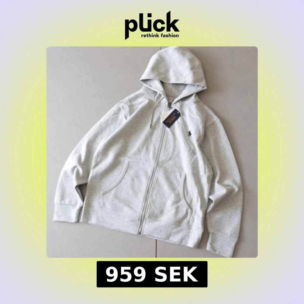 Snygg ljusgrå hoodie från P med dragkedja framtill, huva med snörning och två stora fickor. Klassisk broderad logga på bröstet. Perfekt för en chill och avslappnad stil.