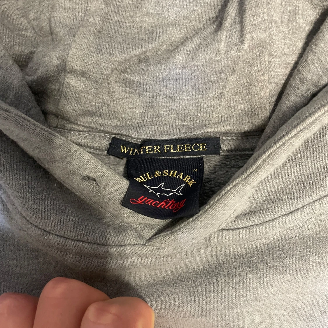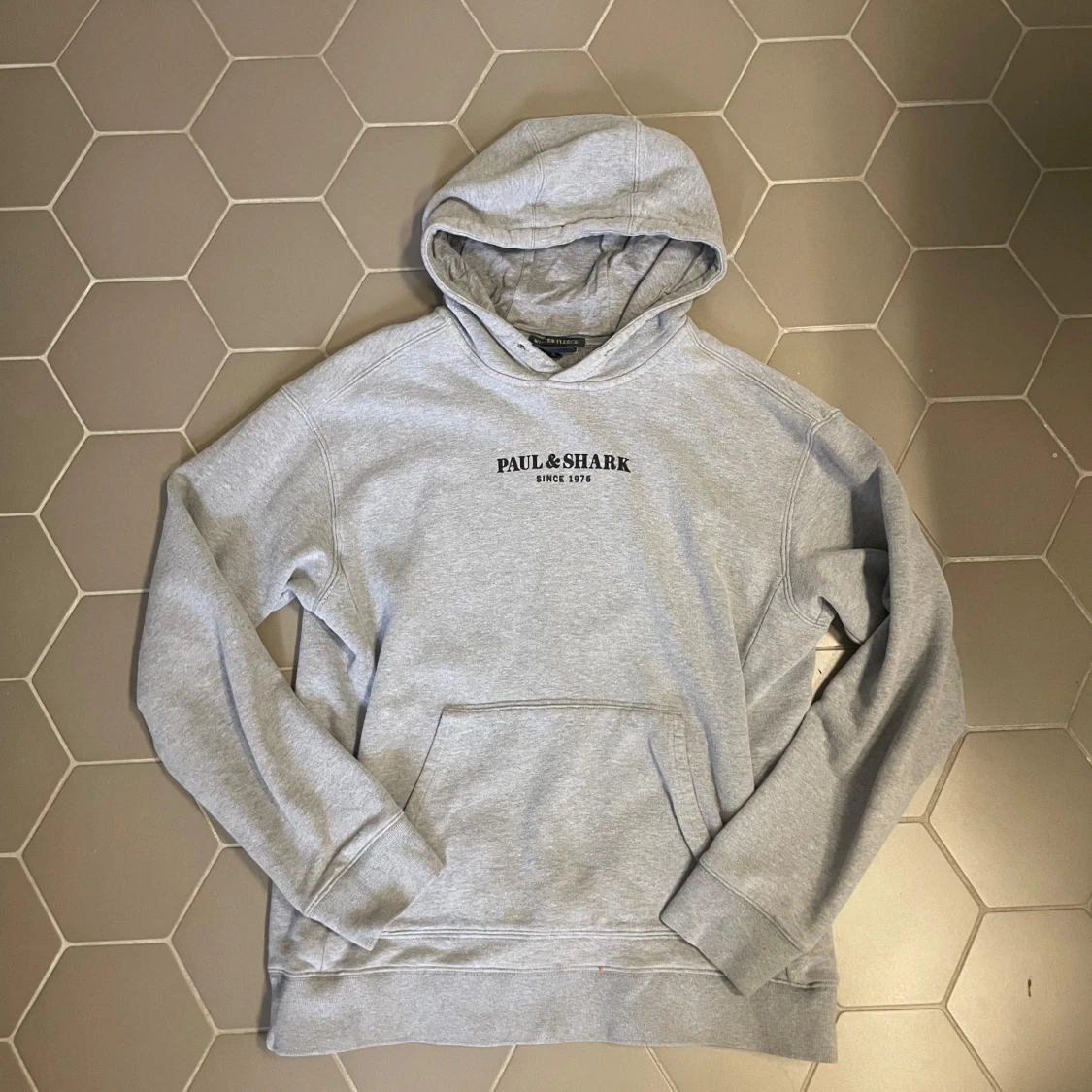 Ljusgrå hoodie från Paul & Shark med broderad logga på bröstet. Tröjan har huva, magficka och är tillverkad i mjuk fleece, perfekt för kyliga dagar. Klassisk passform och långa ärmar gör den både stilren och bekväm.