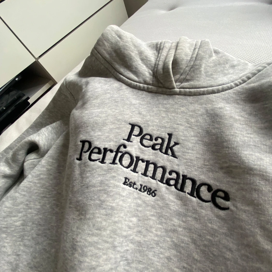Säljer en grå hoodie från Peak Performance. Riktigt snygg. Storlek 150