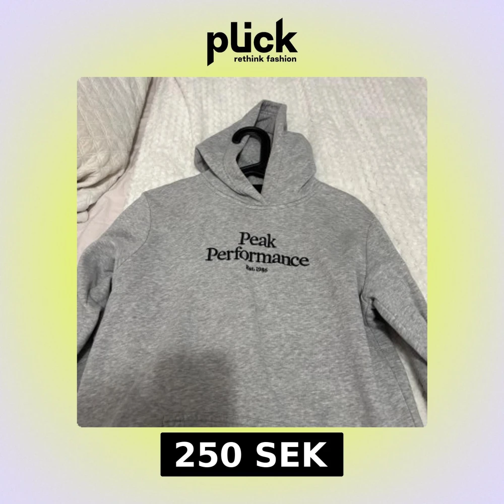 Säljer en stilren grå hoodie från Peak Performance med svart logotyp på bröstet. Perfekt för en avslappnad look. Den har en klassisk huva och långa ärmar.knappt använd