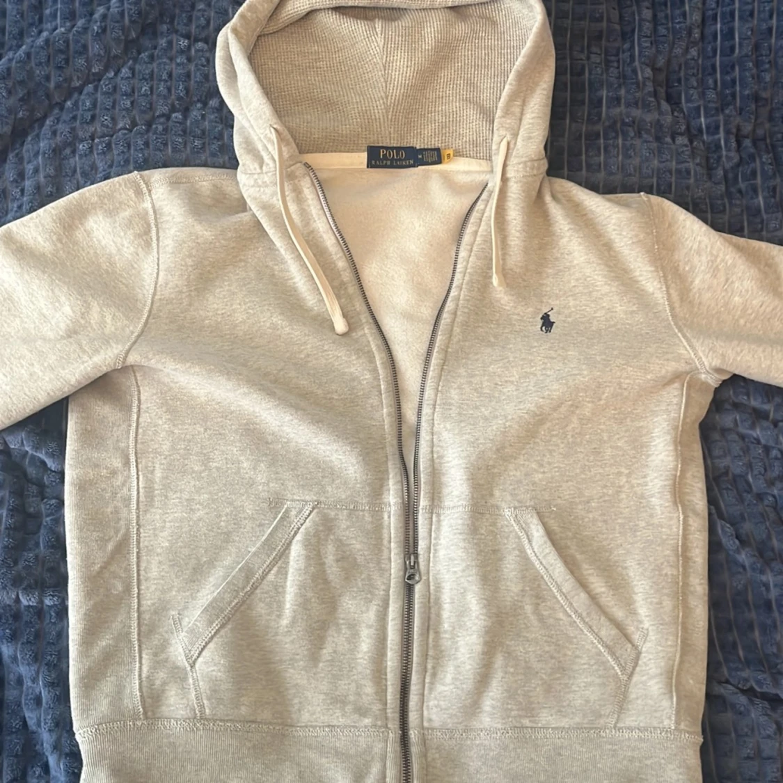 Säljer en stilren grå hoodie från Polo Ralph Lauren med dragkedja och broderad logga på bröstet. Tröjan har en justerbar huva med snören och praktiska fickor framtill. Perfekt för en avslappnad look. Köpt i USA. Skick 9/10 nästan 10, inga defekter.