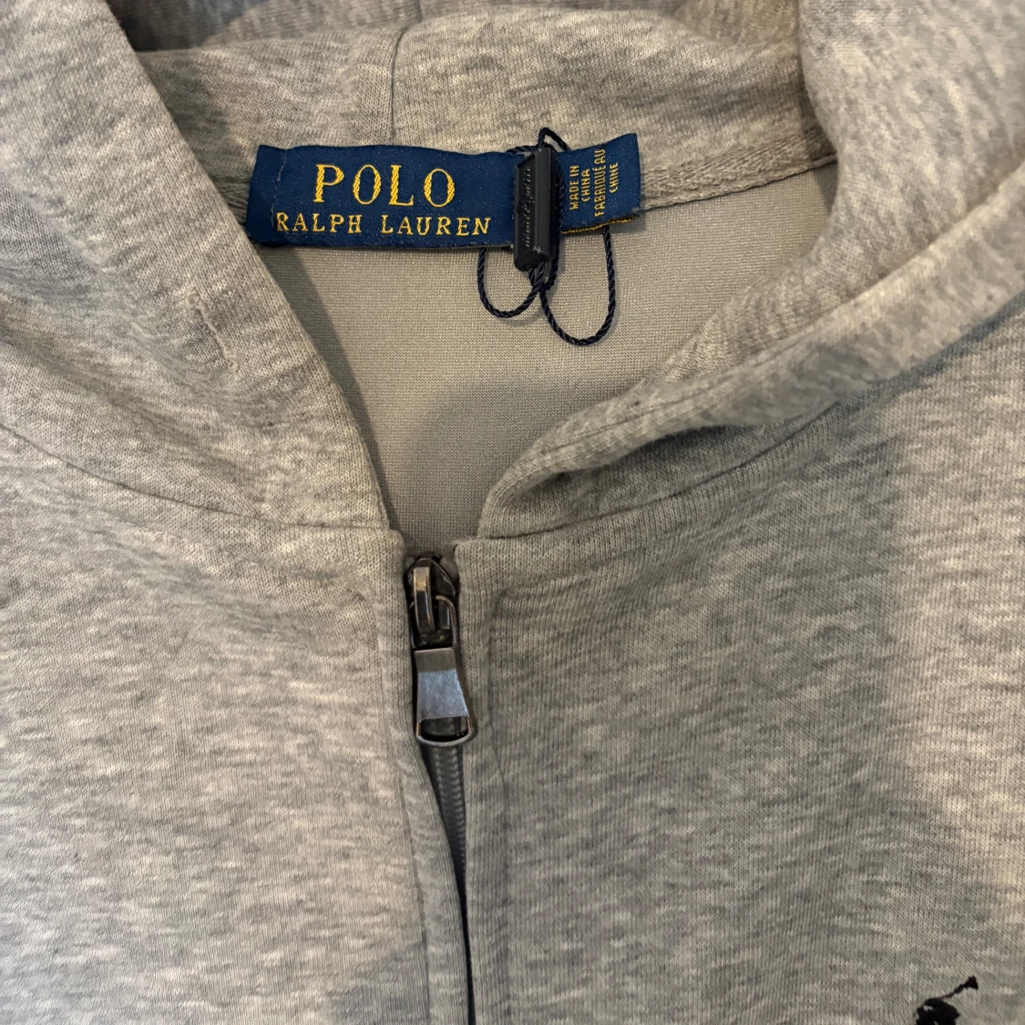 Gråmelerad hoodie från Polo Ralph Lauren med dragkedja framtill och klassisk huva. Tröjan har broderad svart logga på bröstet och känguruficka. Tillverkad i mjuk bomullsmix, perfekt för chill dagar eller när du vill ha en clean look.