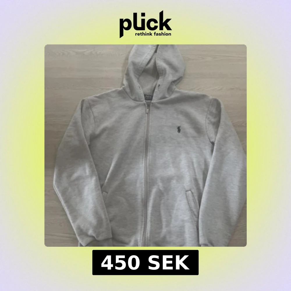 Snygg ljusgrå hoodie från Polo Ralph Lauren med dragkedja och klassisk broderad logga på bröstet. Tröjan har huva, fickor framtill och är fodrad med mjuk fleece på insidan. Perfekt för chill dagar och enkel att matcha med jeans eller joggers.