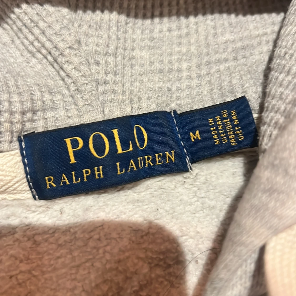 Säljer en stilren grå hoodie från Polo Ralph Lauren med dragkedja och det klassiska logotypbroderiet på bröstet. Tröjan har en justerbar huva och långa ärmar, perfekt för en avslappnad look.