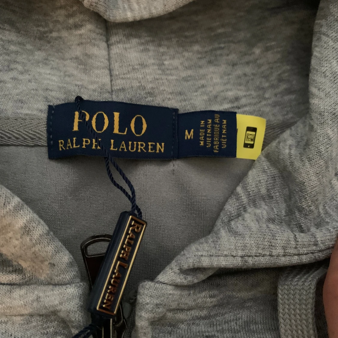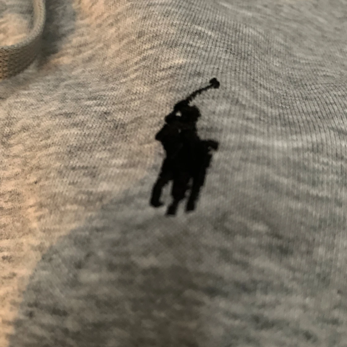 Snygg grå hoodie från Polo Ralph Lauren med klassisk svart logga på bröstet. Tröjan har huva med snörning, dragkedja framtill och två fickor. Tillverkad i mjuk bomull och har ribbade muddar vid ärmslut och nederkant. Perfekt för chill dagar.