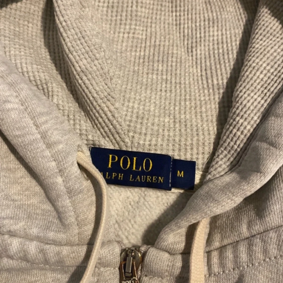 Snygg ljusgrå hoodie från Polo Ralph Lauren med dragkedja, huva och snörning. Klassisk broderad logga på bröstet och två fickor framtill. Perfekt för chill dagar och enkel att matcha med jeans eller joggers.