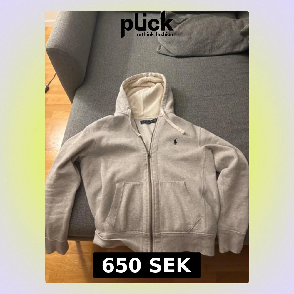 Snygg grå hoodie från Polo Ralph Lauren i storlek M. Tröjan har dragkedja, huva med snörning och två stora fickor framtill. Materialet är mjuk bomull med fleece på insidan för extra komfort. Diskret Polo-logga broderad på bröstet i mörkblått.