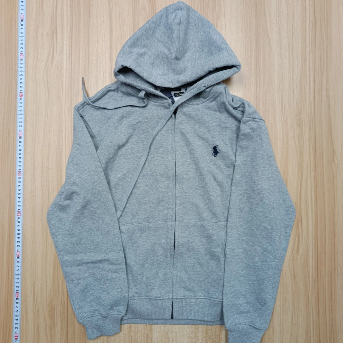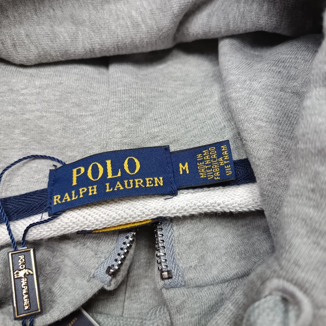 Klassisk grå hoodie från Polo Ralph Lauren i mjuk bomull. Tröjan har huva med snörning, dragkedja framtill och den ikoniska broderade loggan på bröstet. Perfekt för en chill och stilren look.