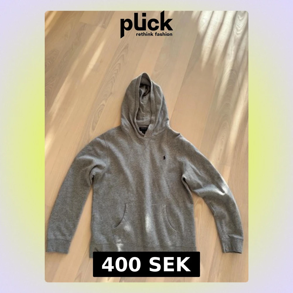 Snygg grå hoodie från Polo Ralph Lauren i storlek 170. Klassisk design med huva, känguruficka och broderad logga på bröstet. Mjuk bomullsmix som är skön att ha på sig och passar perfekt till chill dagar. Enkel och stilren look. Använd men i Ok skick; ej fläckar, hål/nött).