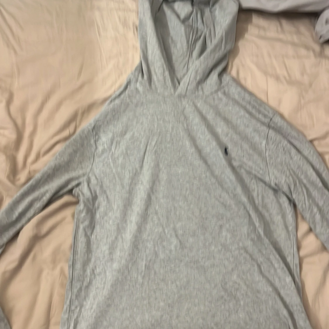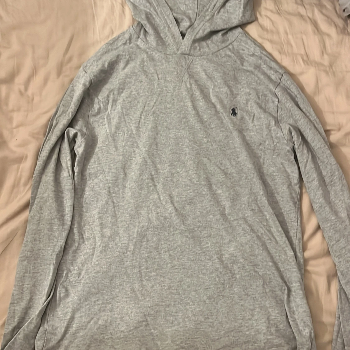 Snygg ljusgrå hoodie från Polo Ralph Lauren i storlek XL. Tröjan har lång ärm, huva och klassisk broderad logga på bröstet. Tillverkad i mjuk bomullsmix som är skön att ha på sig. Perfekt för en chill och stilren look. Helt oanvänd. Storlek XL i barn (170-180) passar Xs & S
