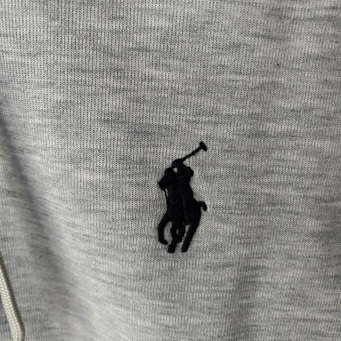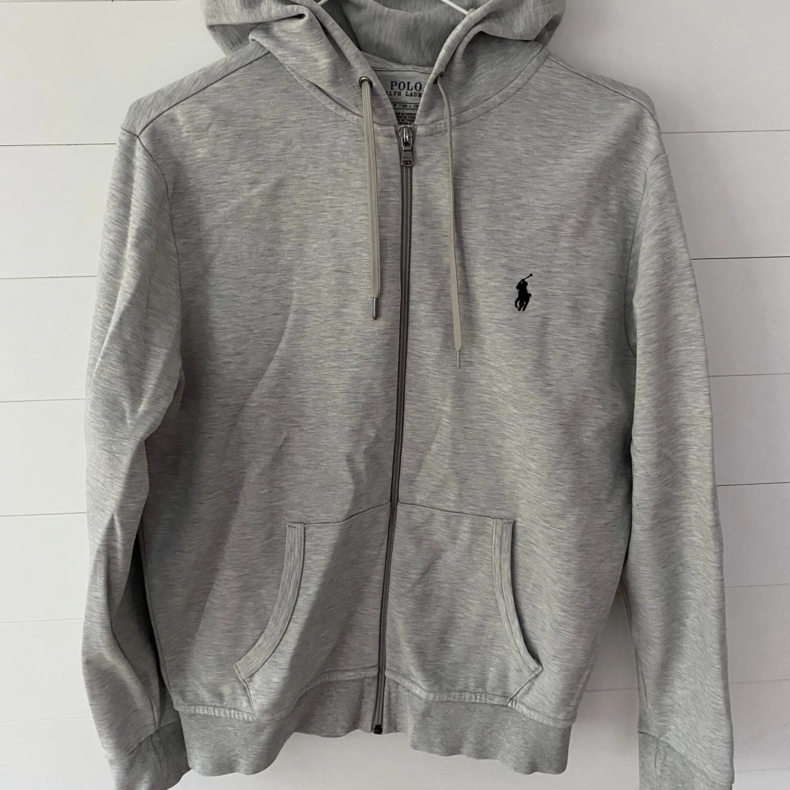 Snygg ljusgrå hoodie från Polo Ralph Lauren med dragkedja, huva med snörning och klassisk broderad logga på bröstet. Mjuk bomullsblandning och två fickor framtill. Perfekt för chill dagar eller när du vill ha en clean look.