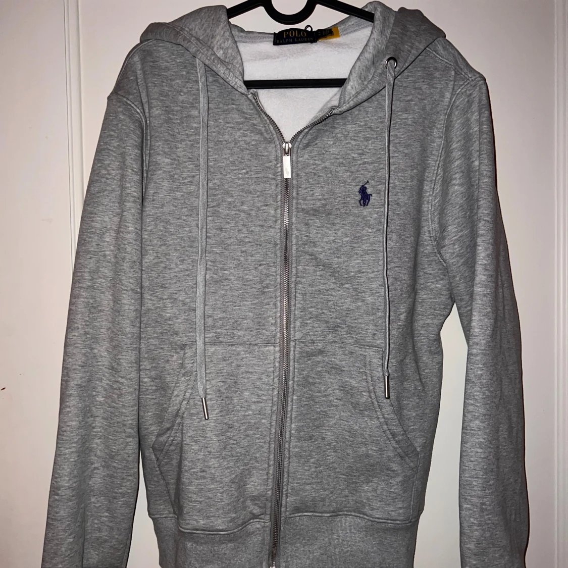 Snygg grå hoodie från Polo Ralph Lauren med dragkedja framtill och klassisk blå logga på bröstet. Tröjan har huva med snörning och två fickor framtill. Perfekt för en chill och avslappnad stil.