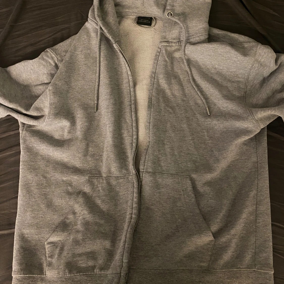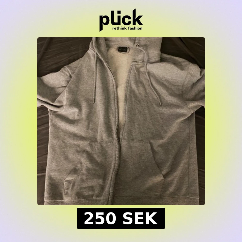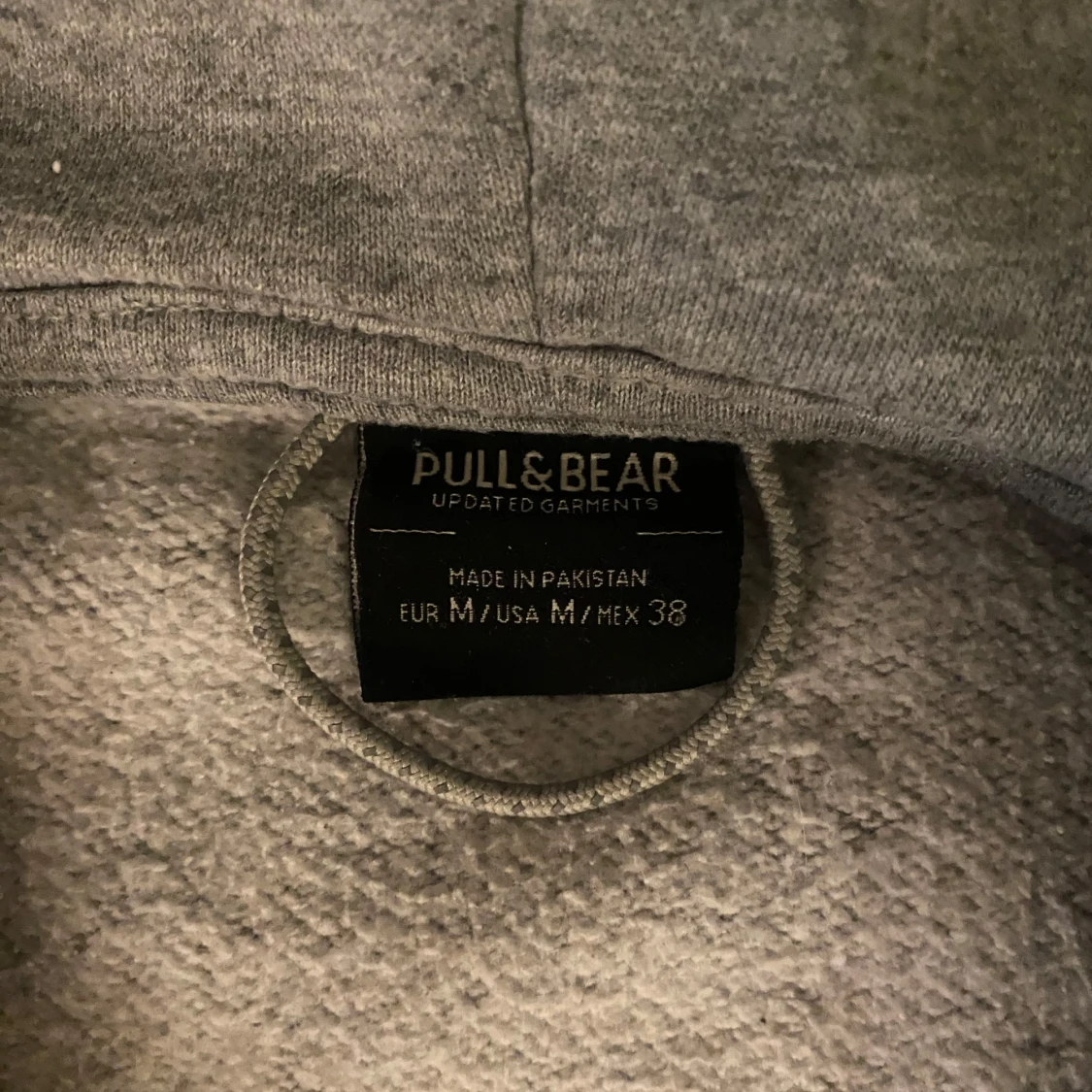 Säljer en grå hoodie från Pull&Bear med dragkedja och justerbar huva. Perfekt för en avslappnad stil. Den har praktiska fickor framtill och är tillverkad i ett mjukt material.