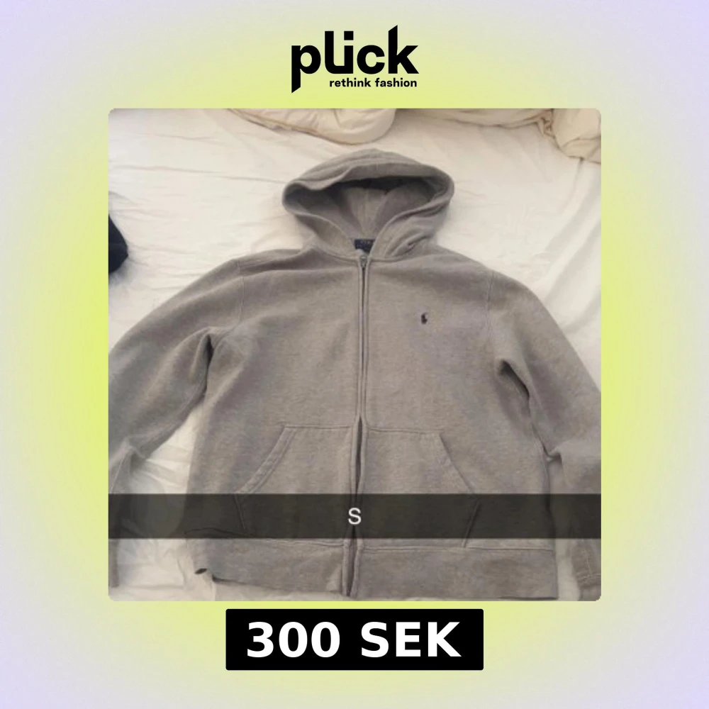 Säljer en klassisk grå hoodie från Ralph Lauren med dragkedja och kängurufickor. Den har en liten broderad logga på bröstet och en bekväm huva. Perfekt för en avslappnad stil.
