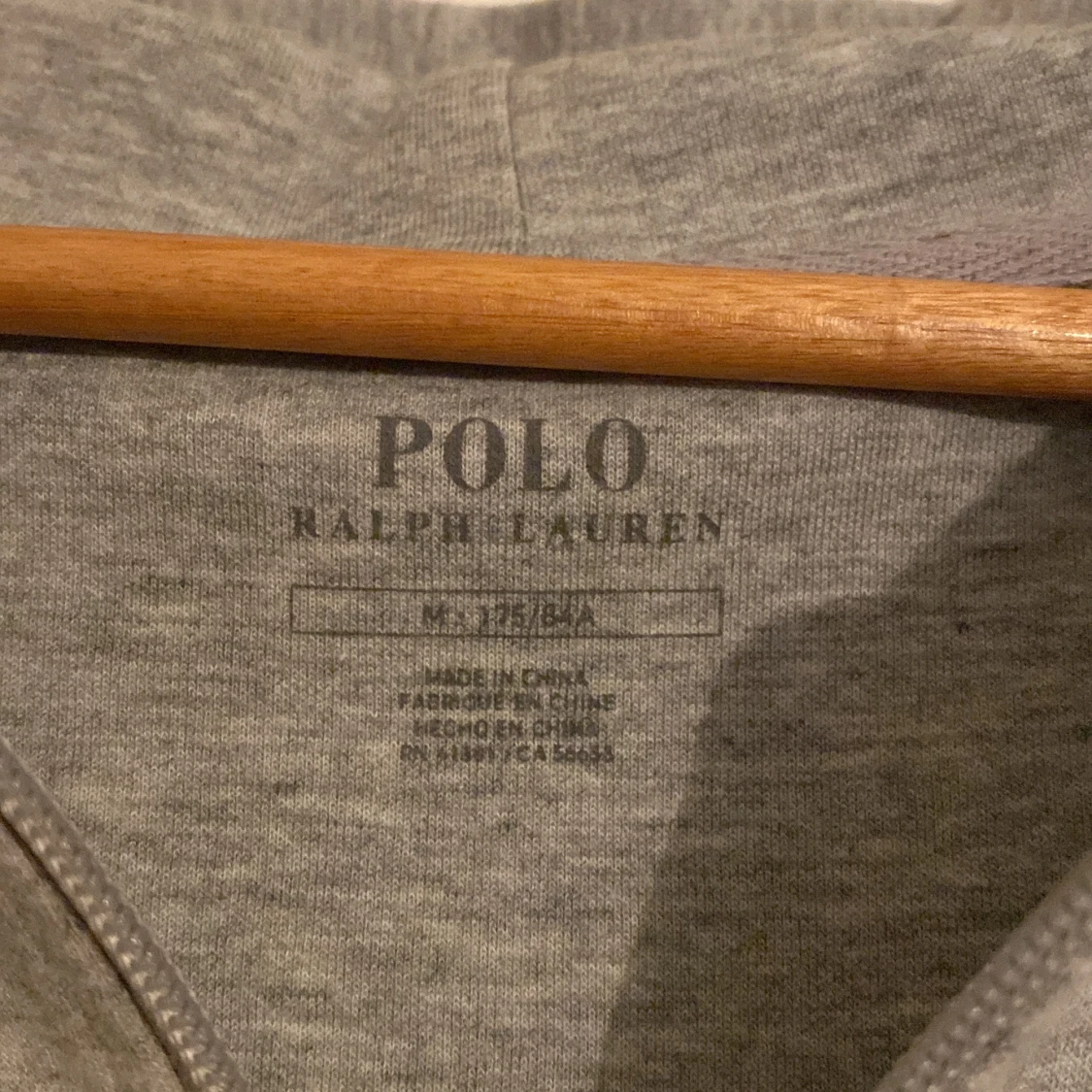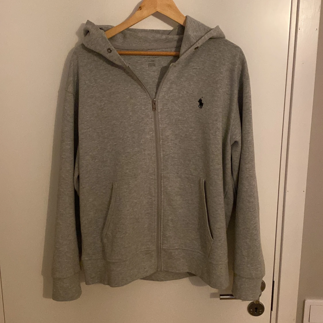 Säljer en snygg och bekväm grå hoodie från Ralph Lauren. Den har en dragkedja framtill och en klassisk logga på bröstet. Perfekt för både vardag och chill. Passar bra till jeans eller joggers!
