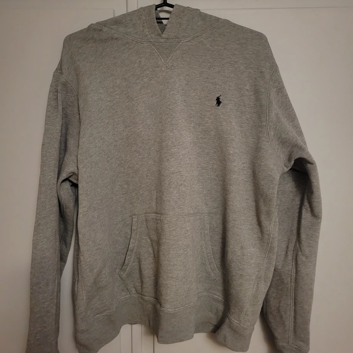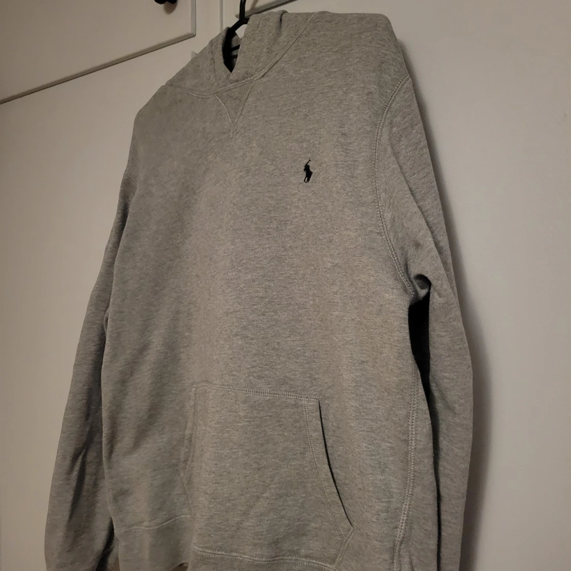 Klassisk grå hoodie från Ralph Lauren med broderad logga på bröstet. Tröjan har huva, känguruficka och långa ärmar. Tillverkad i mjuk bomullsmix som är perfekt för chill dagar. Enkel och stilren design som funkar till det mesta.