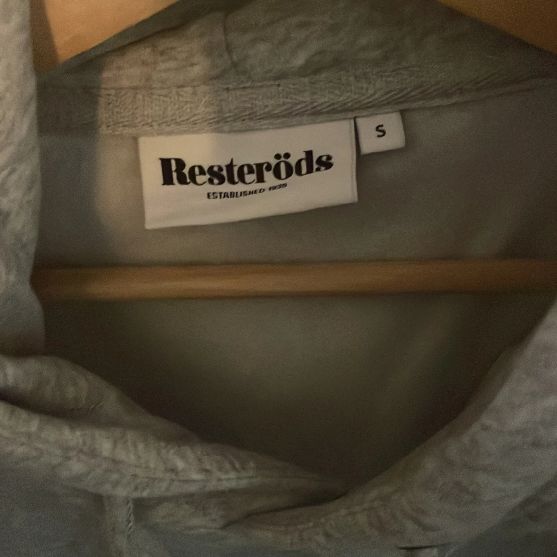 Säljer en stilren grå hoodie från Resteröds. Den har en klassisk design med dragsko i huvan och en praktisk magficka. Perfekt för en avslappnad look.