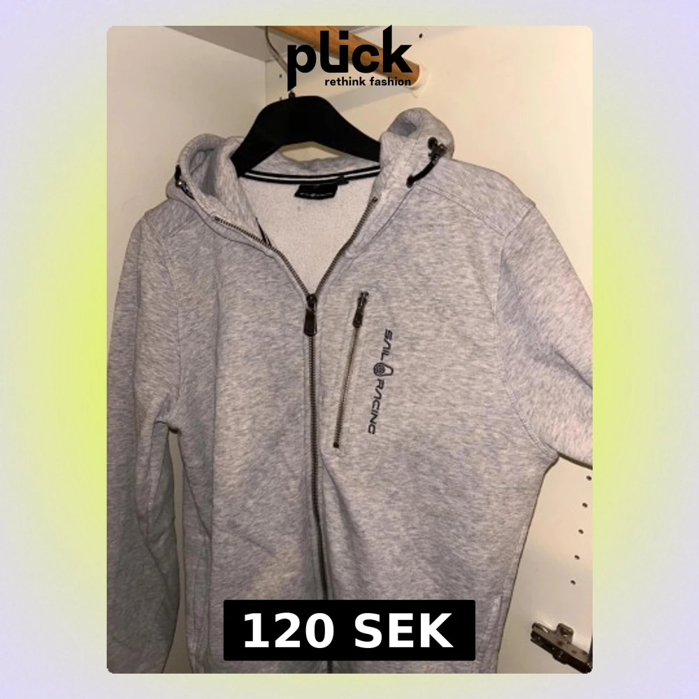 Grå hoodie från Sail Racing med dragkedja framtill och en extra zip-detalj på bröstet. Tröjan har huva med snörning och svart logotyptryck på både bröstet och huvan. Mjuk bomullskänsla och långärmad modell, perfekt för chill dagar.