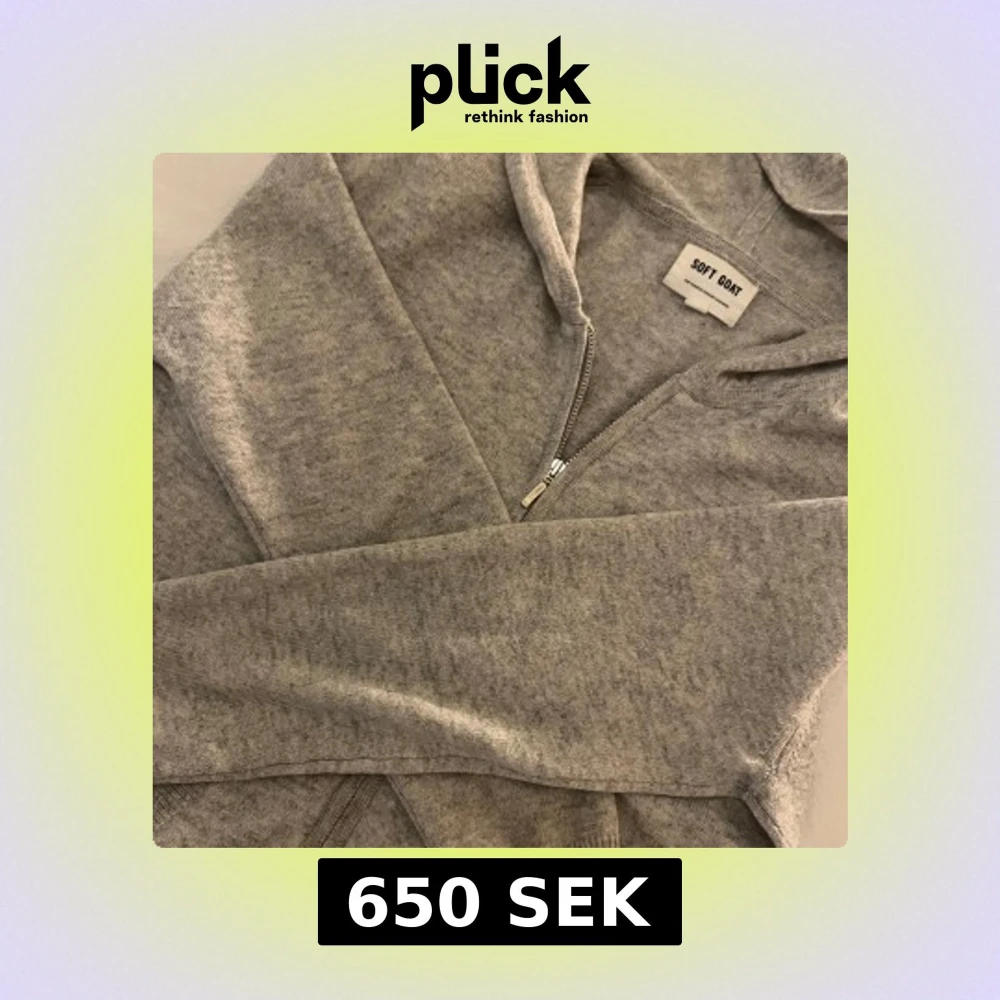 Mysig grå hoodie från Soft Goat med dragkedja framtill. Tillverkad i mjukt material med långa ärmar och en praktisk huva. 100 % cashmere. Perfekt för kyliga dagar.