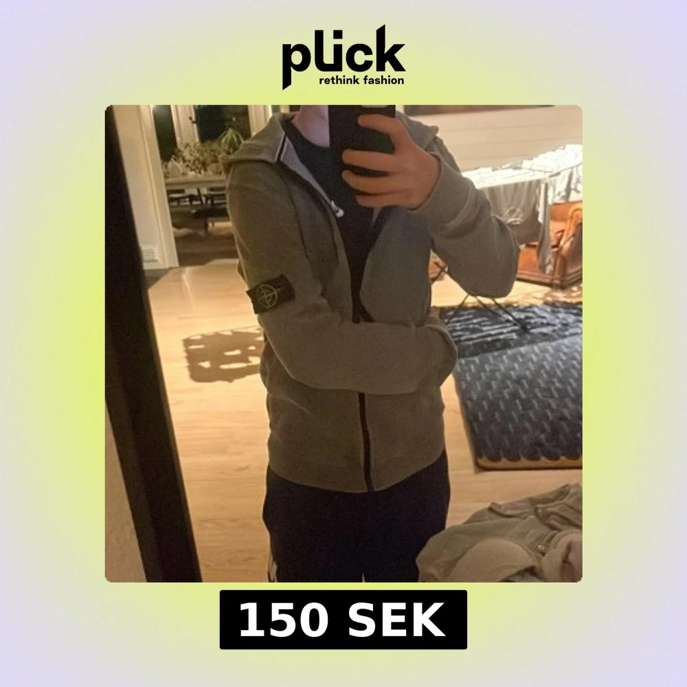 Säljer en grå hoodie från Stone Island Junior med klassisk logotyp-patch på vänster ärm. Tröjan har huva, dragkedja framtill och ribbade muddar. Perfekt för dig som gillar streetwear och vill ha en clean look med snygga detaljer.