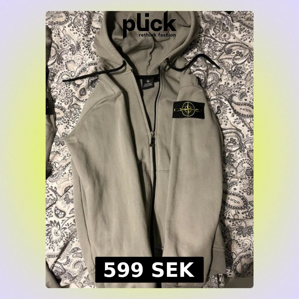 Säljer en grå hoodie från Stone Island med klassisk patch på vänster ärm. Tröjan har huva med snörning, hel dragkedja och ribbade muddar. Perfekt för dig som gillar streetwear och vill ha något stilrent med ikonisk logga. Pris kan diskuteras, kan gärna pruta…