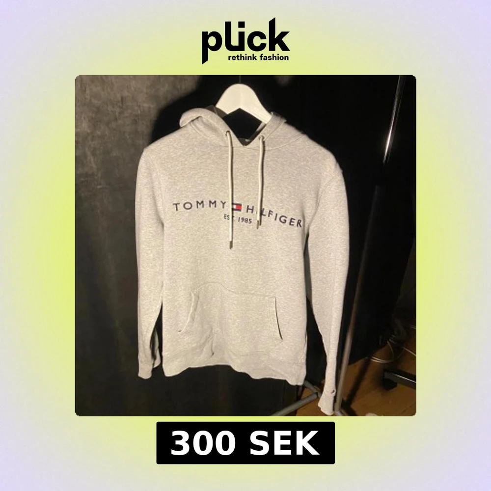 Snygg grå hoodie från Tommy Hilfiger med broderad logga och text på bröstet. Tröjan har huva med snörning och en stor magficka. Perfekt för chill dagar och enkel att matcha med jeans eller joggers.