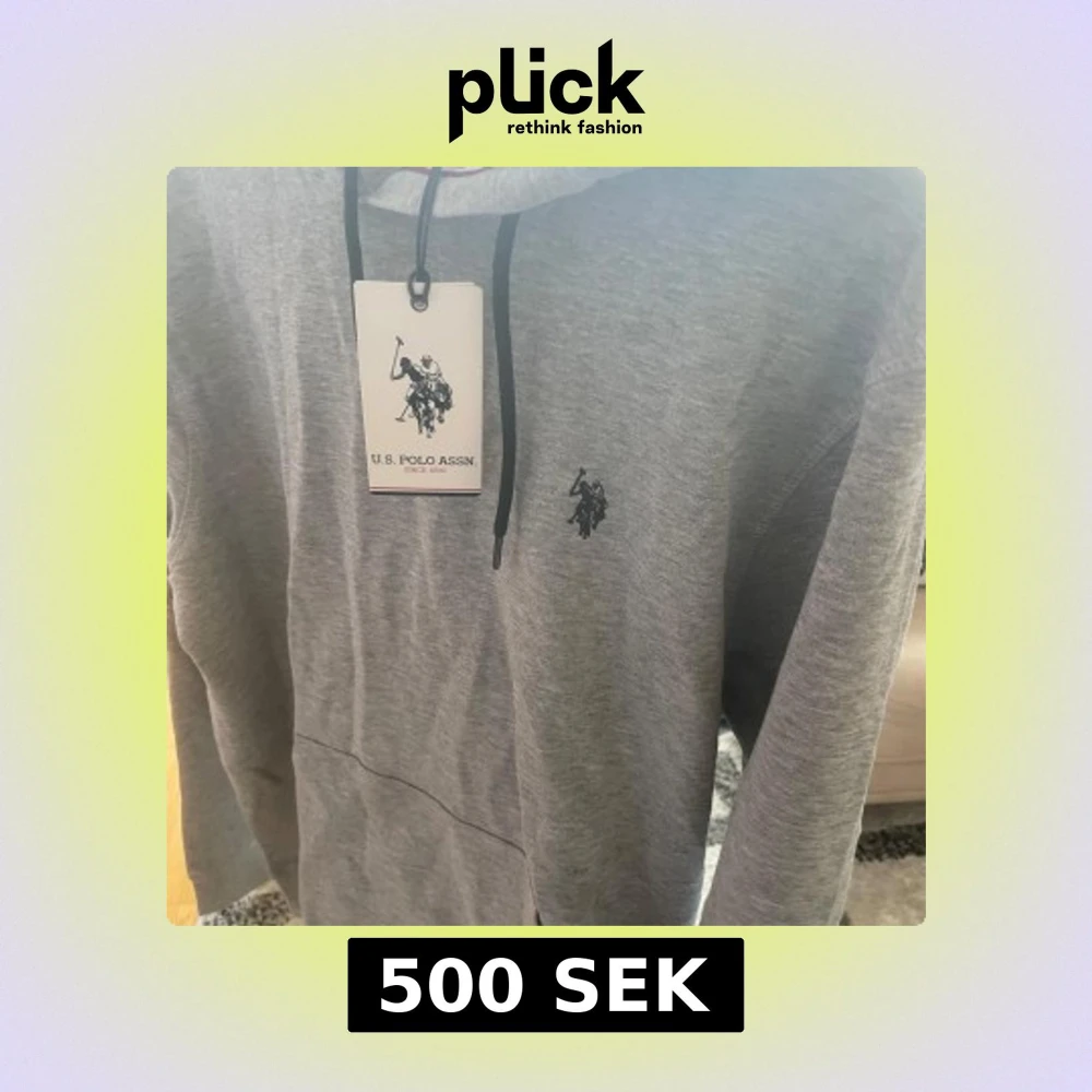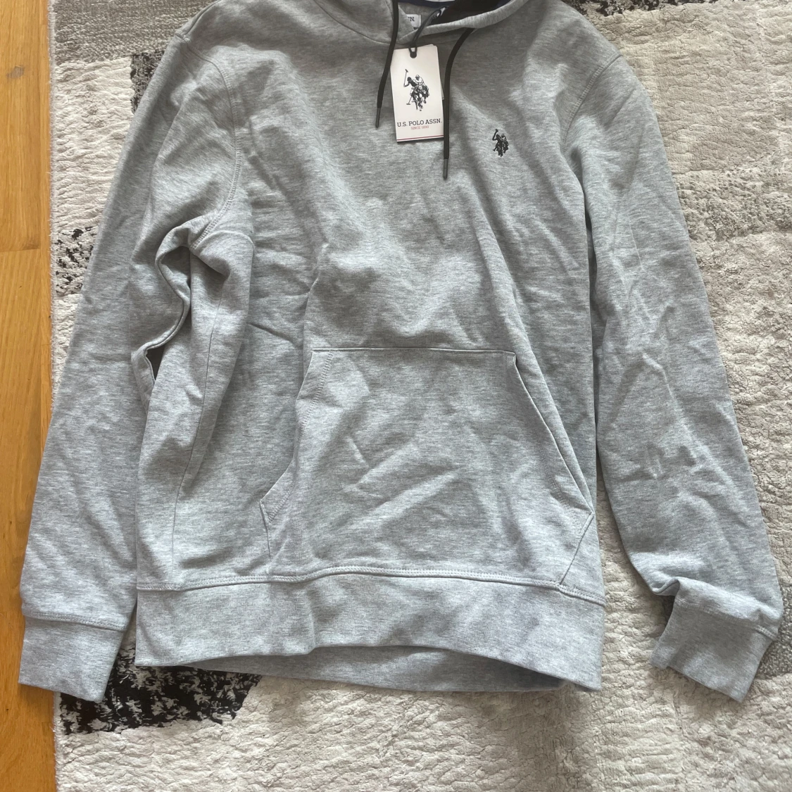 Snygg grå hoodie från U.S. Polo Assn. med svart logga broderad på bröstet och svarta snören i huvan. Tröjan är helt oanvänd som ni ser så finns polo prislappen kvar på tröjan och kvitto finns digitalt på polos hemsida, ta kontakt med mig för mer info.