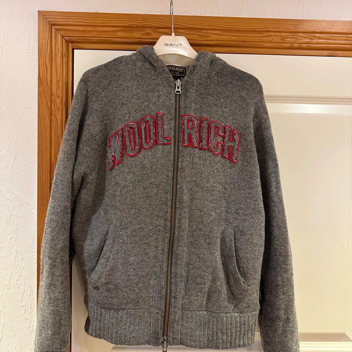 Säljer en grå hoodie från Woolrich med röd broderad text på bröstet. Tröjan har huva, hel dragkedja framtill och två fickor. Materialet är mjuk ull och modellen är normal i passningen. Perfekt för dig som gillar chill och stilren look. Ett litet märke på undersidan av armen som ej syns när den används, löses lätt med nål och tråd!