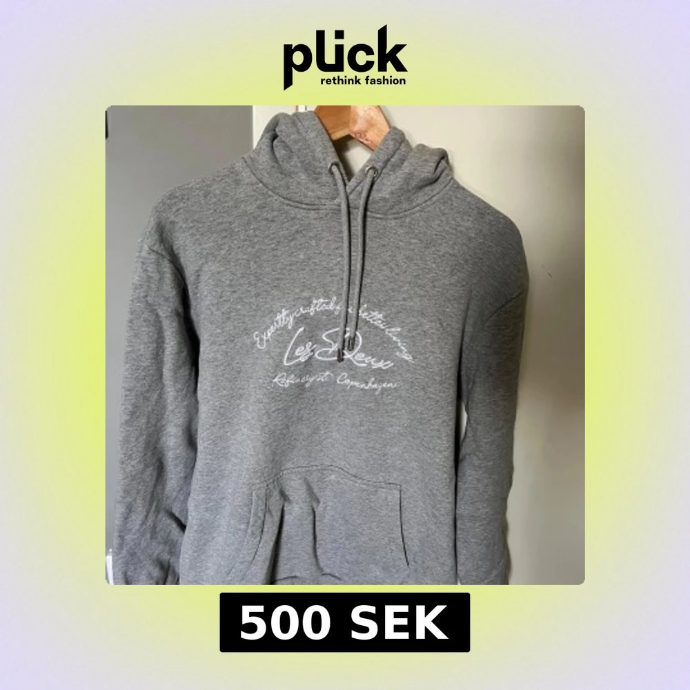 Snygg grå hoodie som är slim fit från Les Deux med vit broderad text på bröstet. Tröjan har huva med snörning och en klassisk känguruficka framtill. Perfekt för en chill och avslappnad stil. Köpte för 1599 och säljer den för 500kr och den är helt sprillans ny