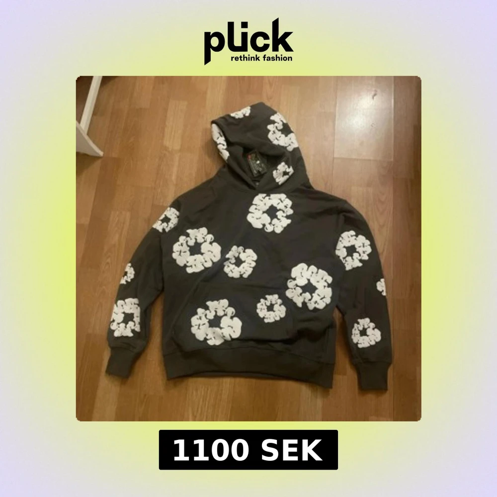 Säljer en cool grå hoodie från Denim Tears med ett unikt vitt blommönster. Perfekt design, Hoodien har en klassisk passform med långa ärmar och en bekväm huva. Perfekt för att ge din outfit en stilfull touch. Tillverkad i USA. Priset kan diskuteras!