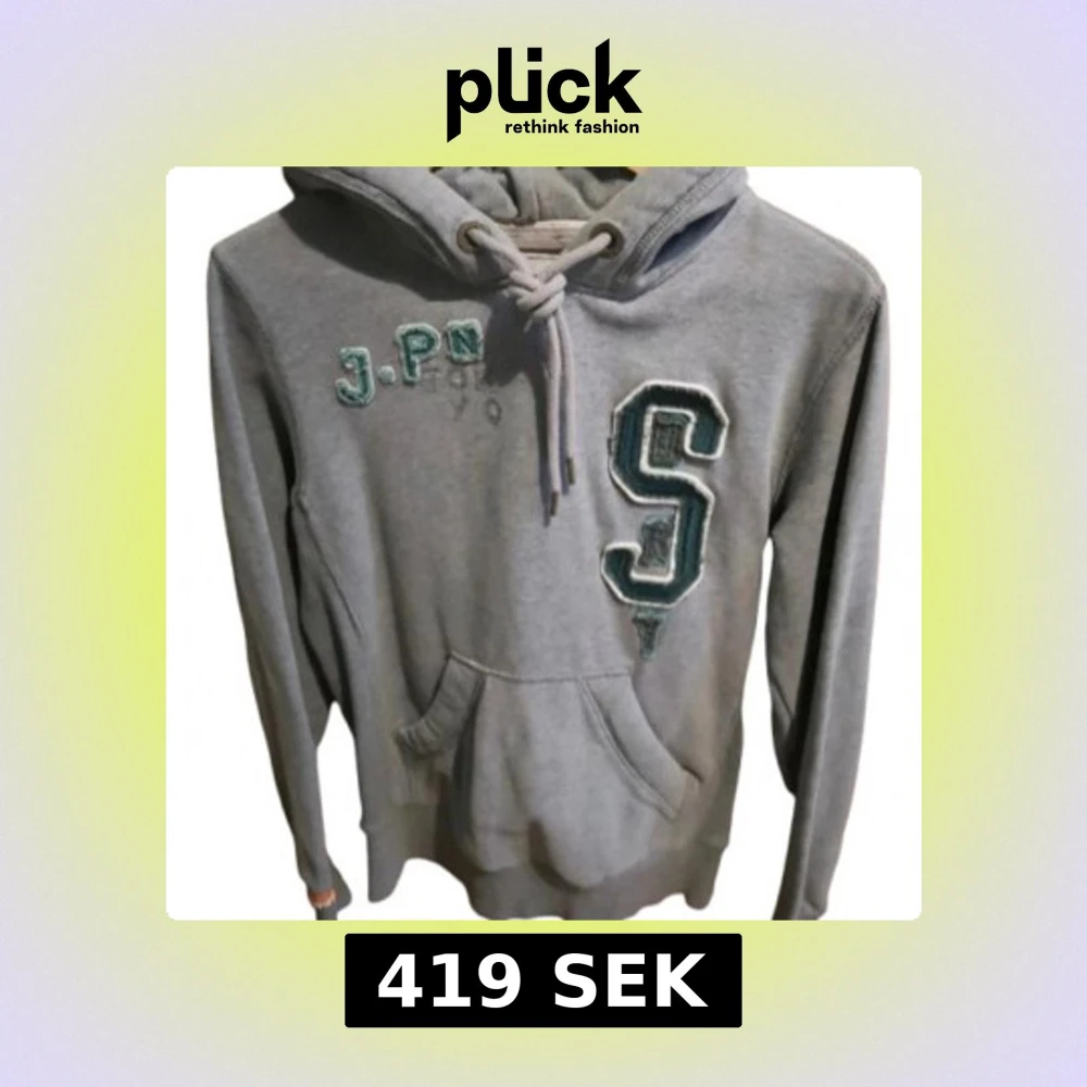 Grå hoodie med broderade bokstäver och stor S på bröstet. Tröjan har huva med snörning och en klassisk känguruficka framtill. Perfekt för en avslappnad och sportig stil.