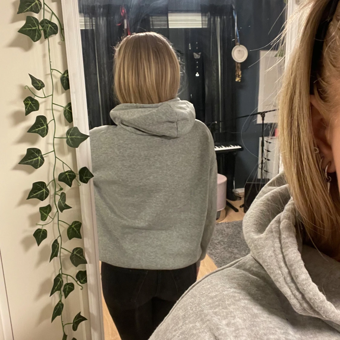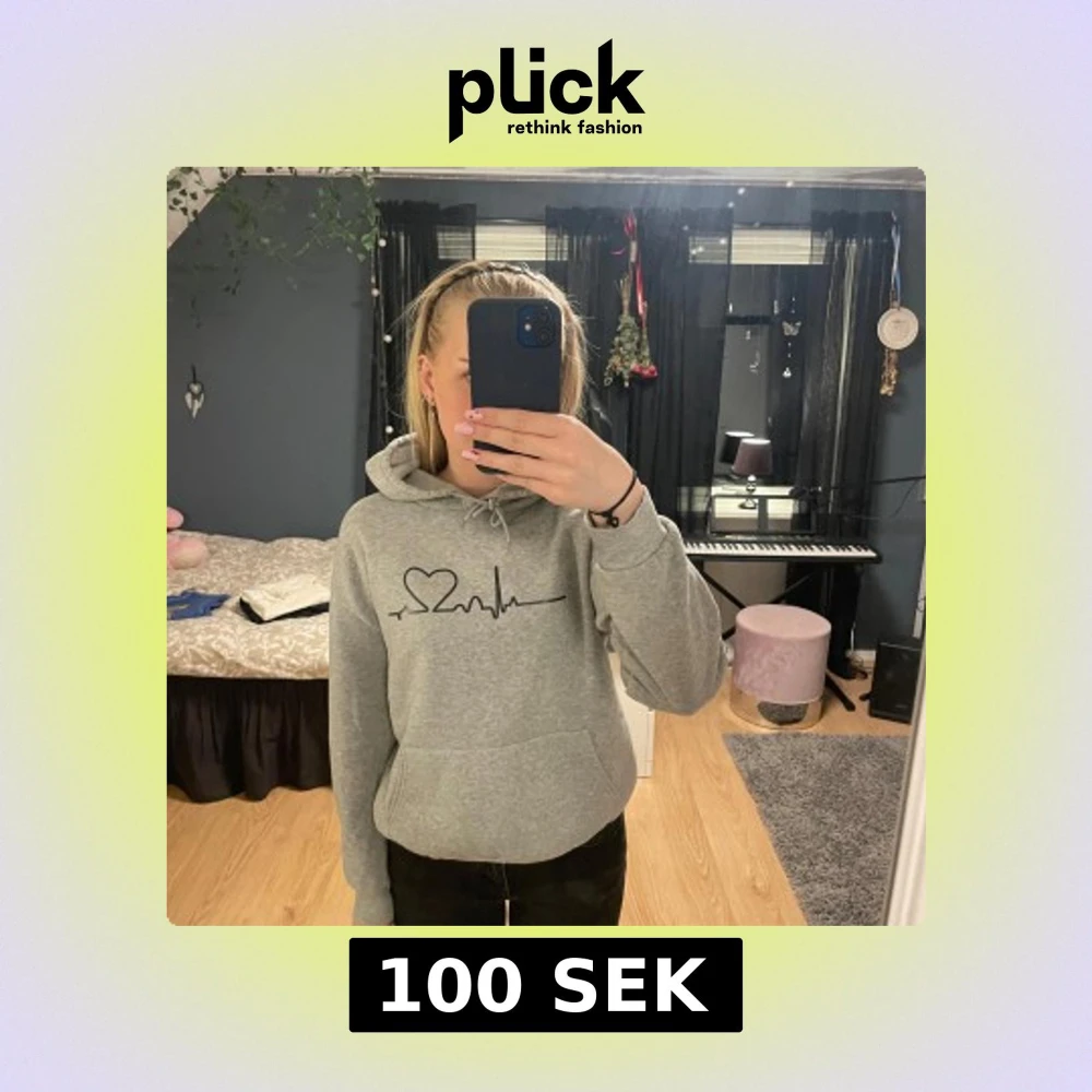 Säljer en ljusgrå hoodie med hjärtrytm på framsidan samt en ficka på magen. Använd några gånger men fortfarande som ny!
