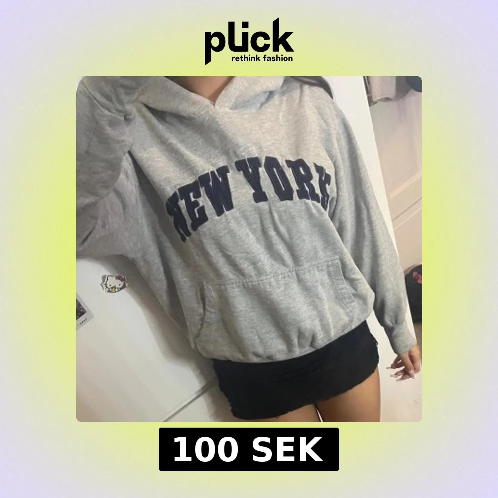 Säljer en grå hoodie med svart New York-tryck över bröstet. Tröjan har huva, känguruficka och långa ärmar. Perfekt för chill dagar och streetstyle. Mjuk och skön, passar till det mesta.