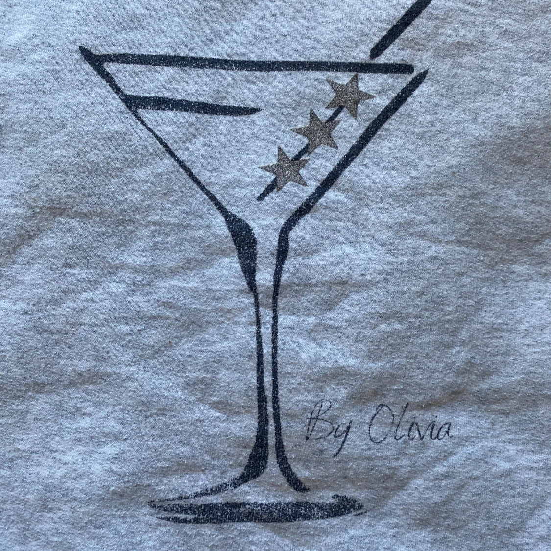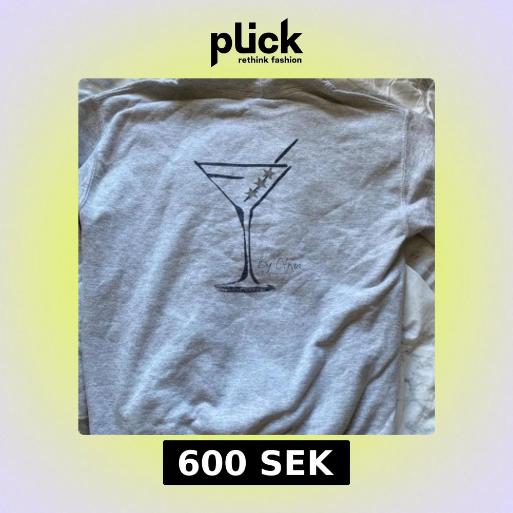 Grå hoodie med ett svart tryck av ett martiniglas på ryggen. Tröjan har huva, magficka och långa ärmar🪩💖 originalpris 760kr