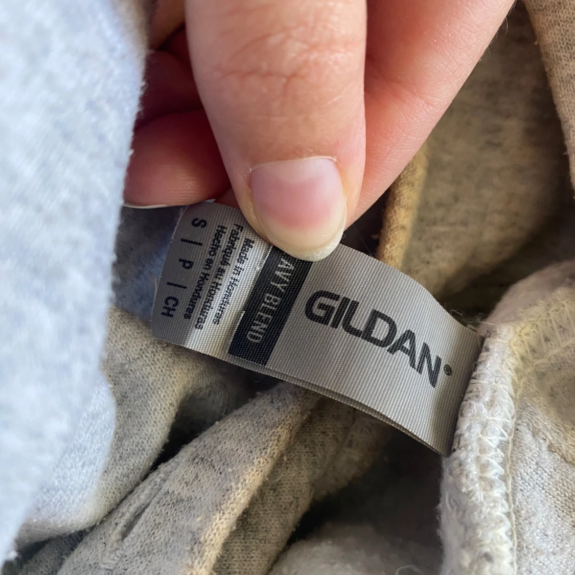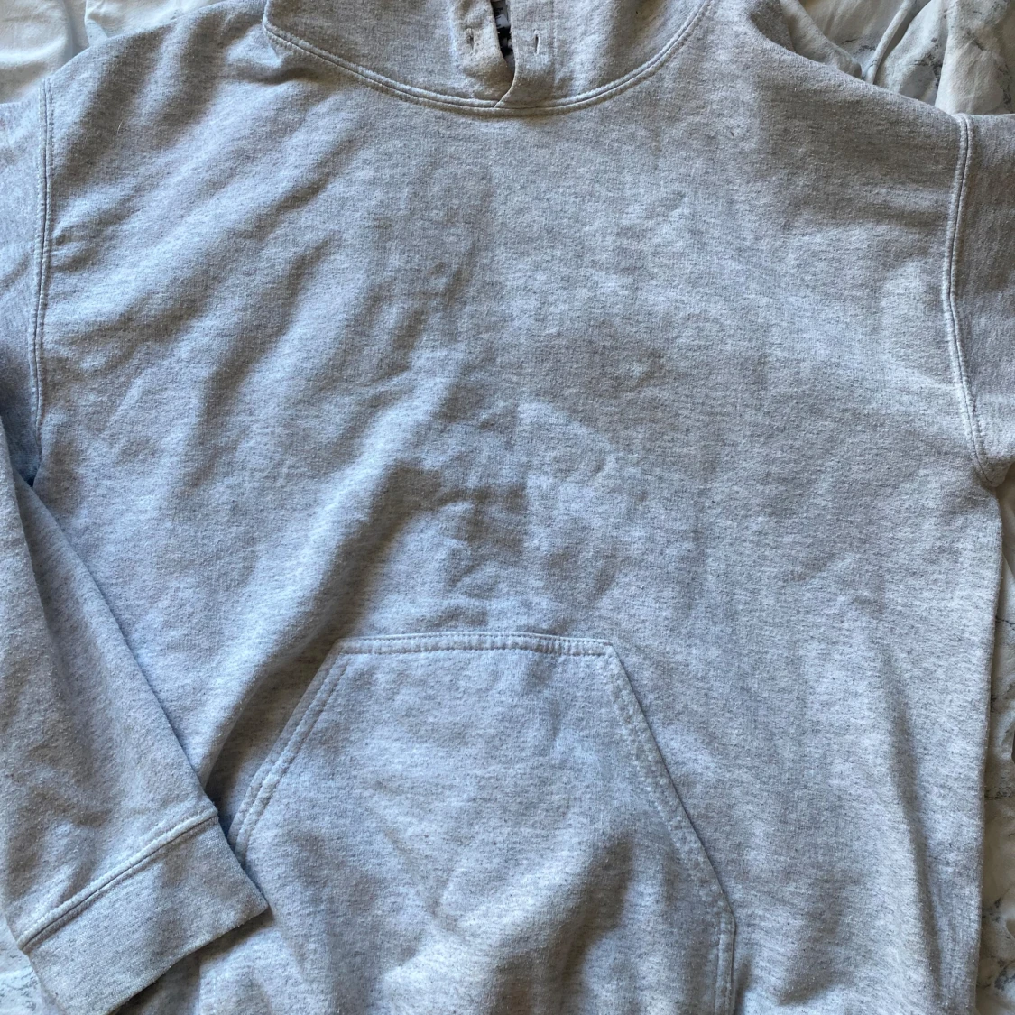 Grå hoodie med tryck på ryggen