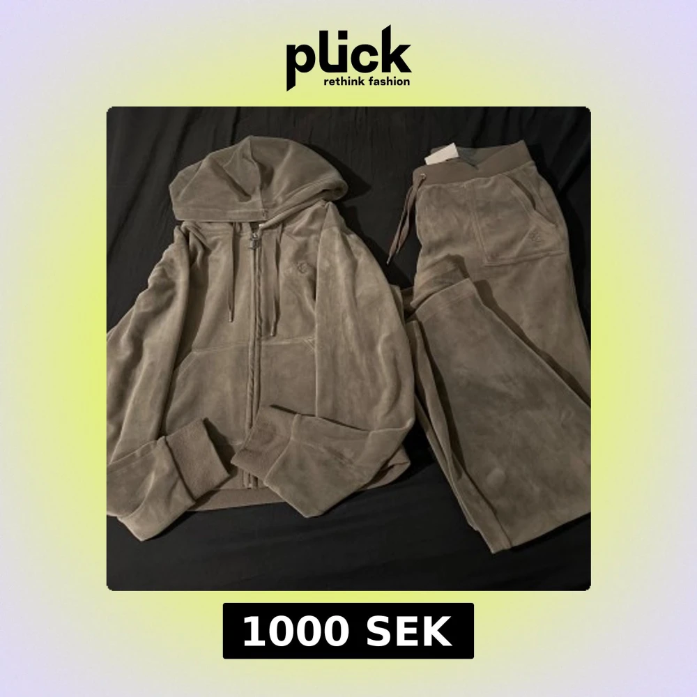 Säljer en grå hoodie och matchande byxor från Juicy Couture. Hoodien har dragkedja och snörning i luvan, medan byxorna har fickor med knappar baktill. Perfekt för en avslappnad och stilren look. Båda metall bitarna är borta på snörena samt lite små litet längst ner på byxorna bak till. Och en jätte liten fläck på hoodien. Annars jätte fint skick. Säljes endast pga att byxorna är förstora. Säljes som sett. Billigare vid snabb och smidig affär