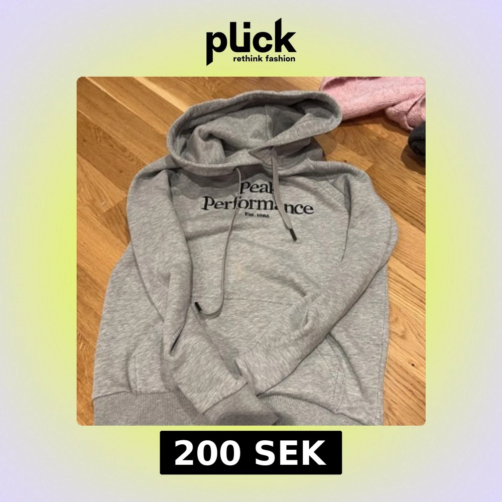 Snygg grå hoodie från Peak Performance i storlek XS. Tröjan har broderad svart logga på bröstet, huva med snörning och klassisk känguruficka. Mjuk och skön bomullsblandning, perfekt för chill dagar eller när du vill vara bekväm.